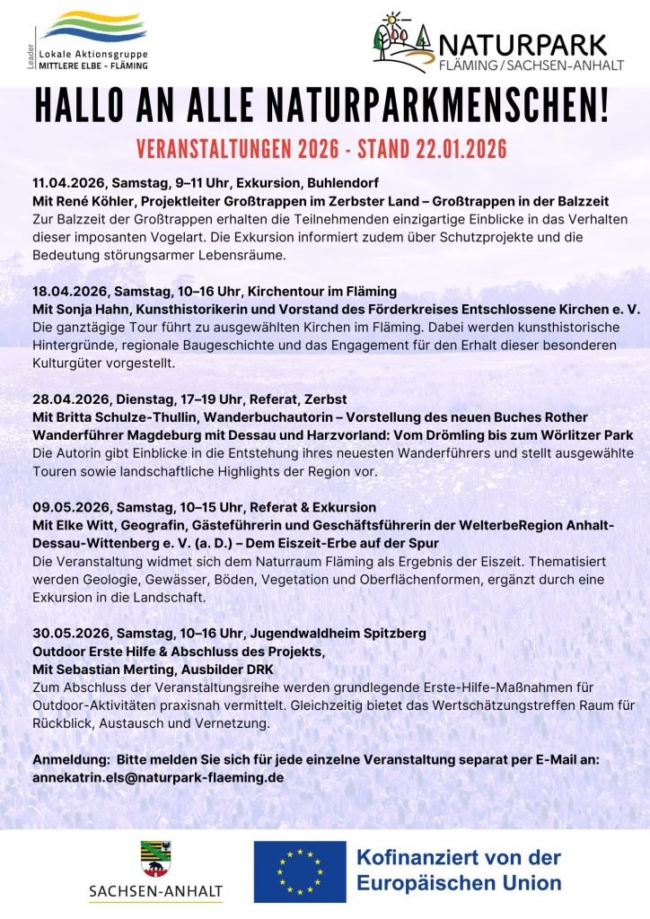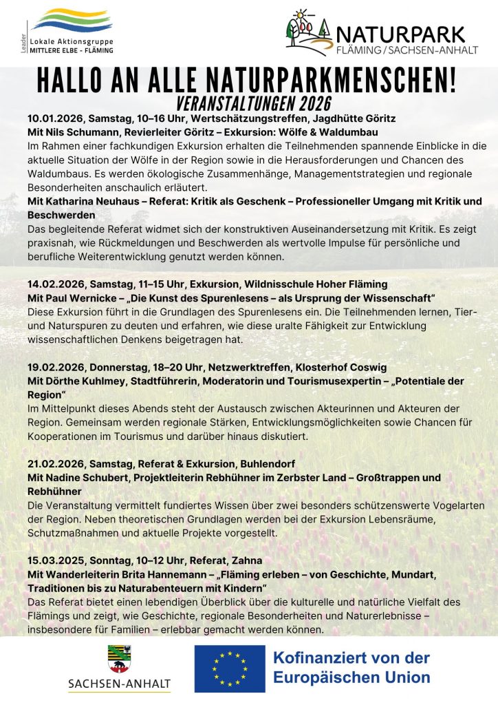Wir starten unser Naturparkmenschen-Projekt – ein spannendes Programm für alle, die den Naturpark Fläming/Sachsen-Anhalt lieben und noch tiefer in seine Geschichte, Natur und Besonderheiten eintauchen möchten.